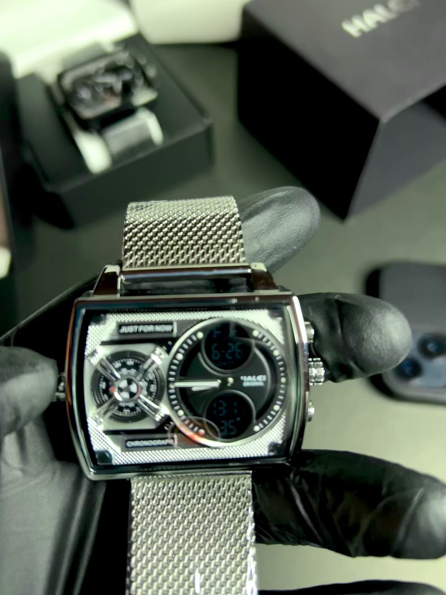 Upgrade your wrist game with the HALEI "Just For Now" Chronograph A++Watch. Combining a futuristic dual-display design with a sleek stainless steel mesh strap, this timepiece is crafted for trendsetters who value precision and style.